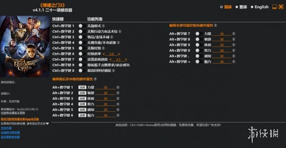 >>>《博德之门3》v4.1.1二十一项修改器风灵月影版