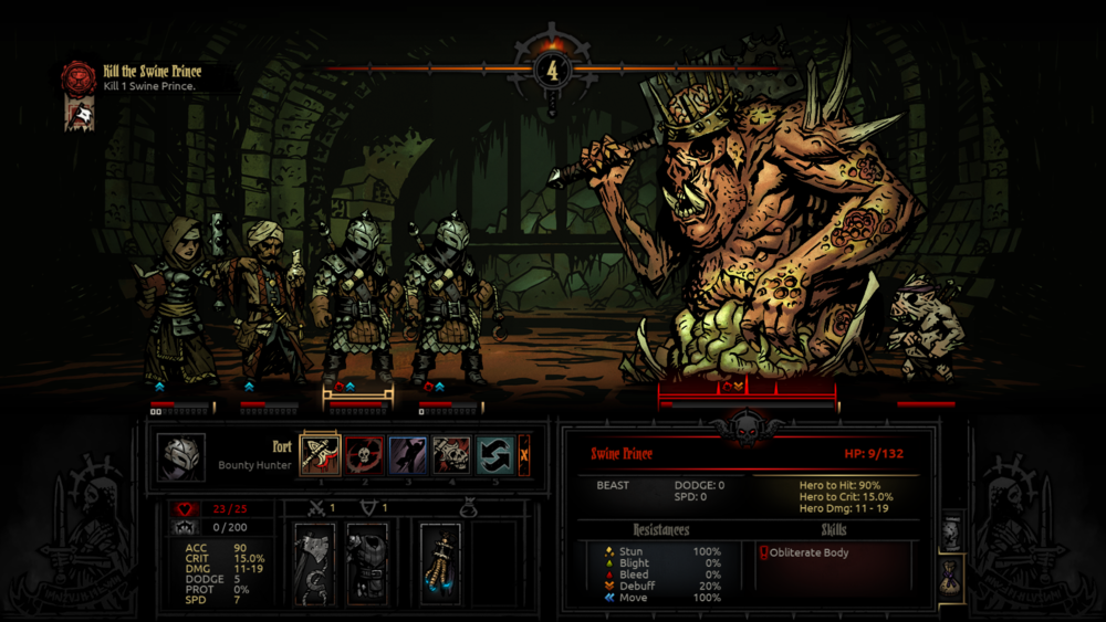 在随机生成的地牢中探索,收集资源和装备,提升角色的能力,同时注意管理角色的压力,避免角色因压力过高而崩溃。