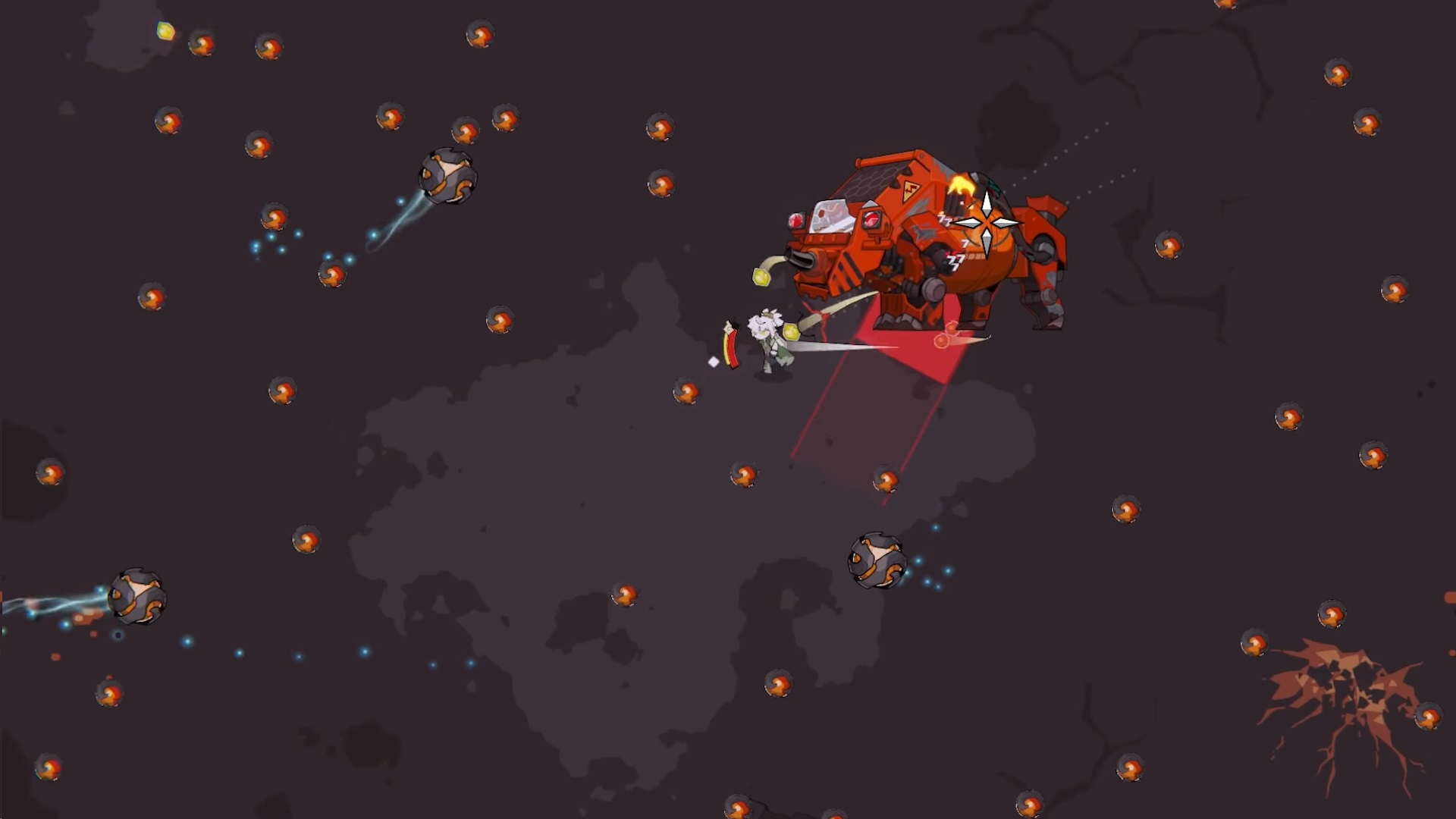 洛坎塔的每个区域都设有独特的守关Boss,带有特定的挑战和技能。玩家需要利用不同的弹珠特性(例如冰系弹珠减速、火系弹珠点燃)和灵活的走位来战胜这些Boss。