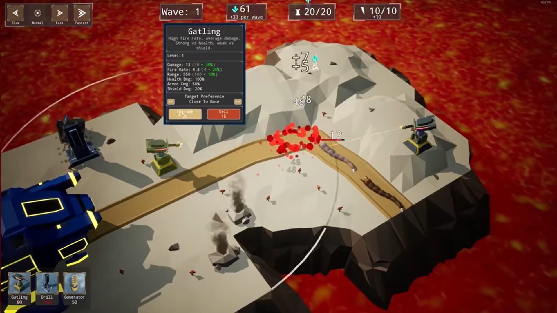 游戏中玩家需要收集矿物,资源用于建造和升级防御塔及其他结构。这些矿物在不同的战斗中会有不同的掉落。