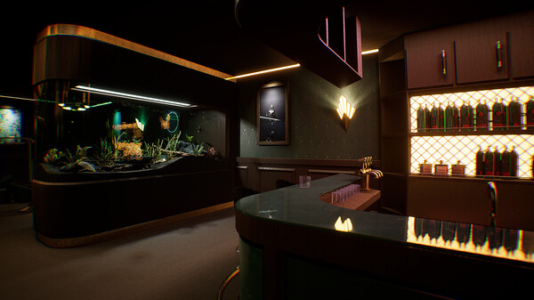 酒店场景以1920年代装饰艺术(Art Deco)风格构建,融合几何线条与金属质感,强化复古神秘感。