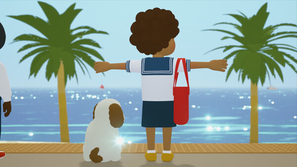 自由探索海边小镇,乘坐火车或骑行解锁区域,发现隐藏观景点与商店,收集散落硬币用于兑换服装、发型等自定义道具。