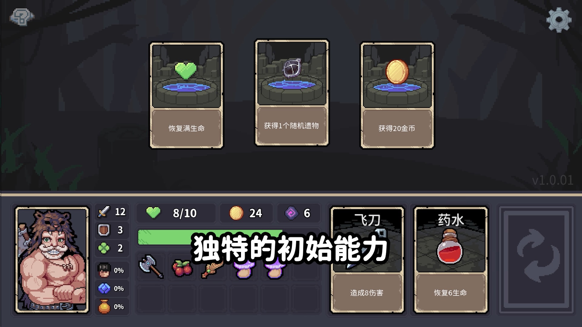 游戏采用类似空当接龙的卡牌翻转机制,玩家需要战略性地翻动卡牌,选择合适的装备、道具和技能。每次翻牌都是一次潜在的冒险。