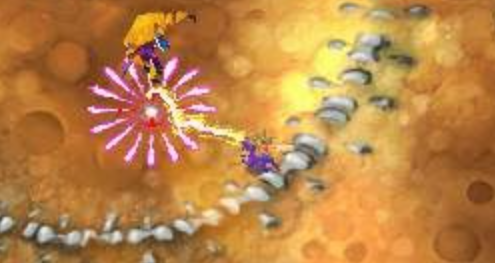 《小龙斯派罗传奇 崭新的开端》注重战斗的紧张感与叙事深度,画面采用暗黑奇幻风格,场景细节与光影效果在NDS平台表现突出。讲述了紫色小龙斯派罗从破壳诞生到成为龙族英雄的成长历程。玩家将伴随斯派罗探索广阔的奇幻世界,从茂密的森林到险峻的火山,每一处场景均充满平台跳跃与战斗挑战。