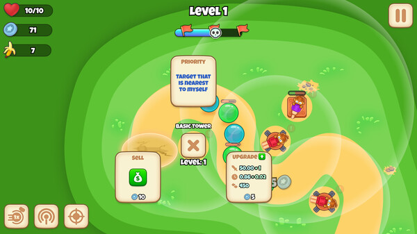 《猴子泡泡防御》以“卡通塔防+属性克制”为核心,通过多样化的防御塔组合、动态敌人设计和轻量化操作。玩家扮演“泡泡猴”部落的首领,抵御“糖胶兽”军团的入侵。这些敌人由融化的糖果与工业胶水变异而成,企图偷走猴子们的“神圣香蕉酒”。玩家需用“彩虹气泡枪”发射可黏附万物的泡泡,利用雨林生态完成战术防御。