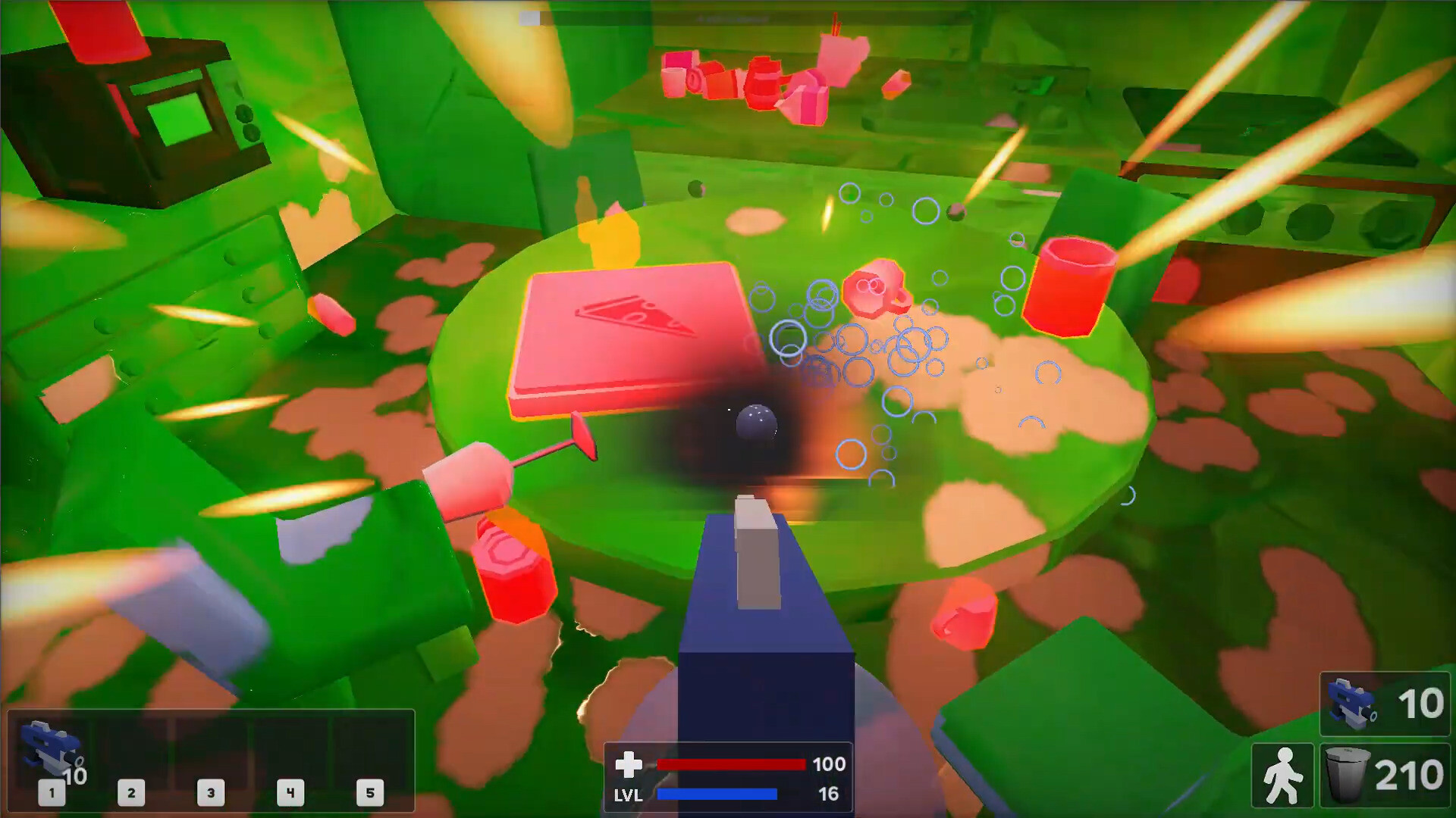 通过清理污垢和杂物,玩家可以获得经验值,进而升级他们的工具。游戏提供15种独特的升级选项,涵盖武器、泡泡和创造性探索三大类别。