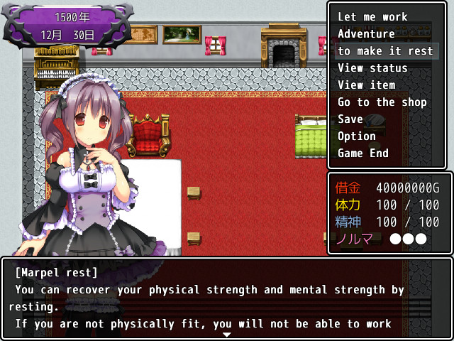 玩家主要操作女主角马佩尔,通过完成任务、冒险和工作来偿还债务。马佩尔的体力和精神力是游戏中的重要属性,玩家需要合理安排她的休息和工作时间,以保持她的状态。