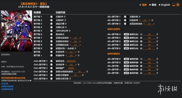 >>>《真女神转生5:复仇》v1.0.3三十一项修改器风灵月影版
