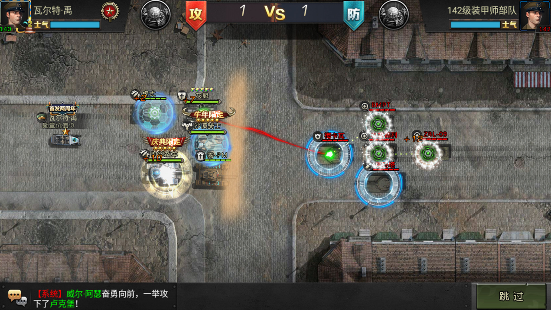 玩家可以根据敌我双方情况,自组坦克阵容,搭配不同坦克的技能,出奇制胜。游戏中每辆坦克都有独特的技能,技能会随着坦克品质的提升而增强。