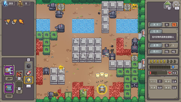 玩家需要在关卡中收集各种随机坦克组件,包括炮塔、底座、炮弹、模块和核心。通过自由组合这些组件,玩家可以打造出独一无二的坦克,用于保护基地并击败敌人。