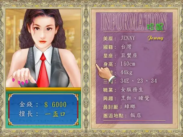 游戏研发人员为了带给玩家热情、养眼的感受,精心设定了多位各具特色的美女角色与玩家对战。这些美女角色像从真实社会中所筛选出来的,各有其不同的身份与个人的身家资料。