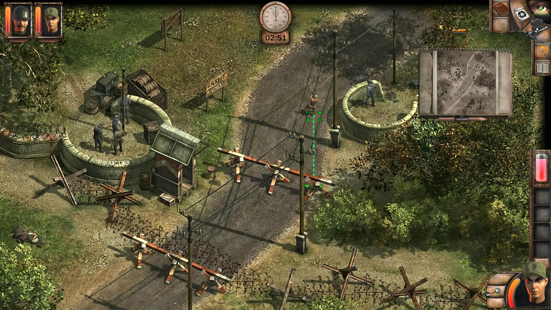 盟军敢死队2勇往直前,在游戏中,玩家需要控制一支由不同国籍和技能的精英部队组成的盟军敢死队。游戏中每个角色都有独特的技能,比如狙击手可以射杀敌人,勇士可以攻击和破坏敌人设施,医生可以治疗伤员等等。玩家需要利用每个角色的技能,完成各种任务,比如突袭敌人基地、摧毁敌方设施、收集情报等。