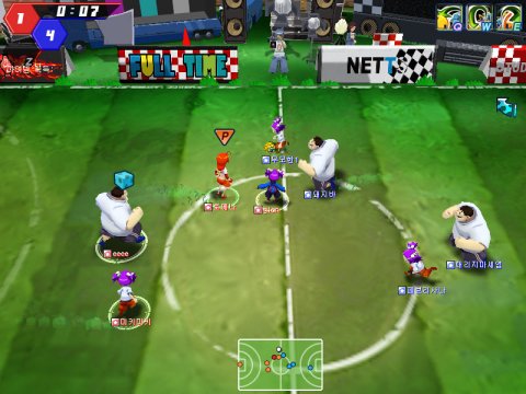 韩国NETTS Soft公司开发的,室内足球题材网游《Full Time》 (暂译:全职足球) 把足球规则给最小化的同时,导入了不少足球以外,影响胜负的“地图道具”。如,威力最强的“火焰球”,能使赛场震动的“地震”,能把对手吸过来的“爱情药水”,能快速消失的“怪物帽子”等等。