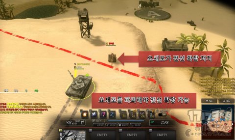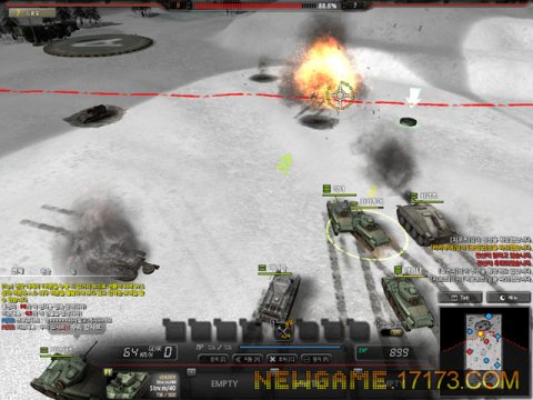开发《Blitz2》的 Creant 在前作单纯以战斗为主的游戏内容中导入战线系统,想在《Blitz2》中取得胜利不止要破坏敌方的战车,还要推进该区域的战线,占领所有区域。