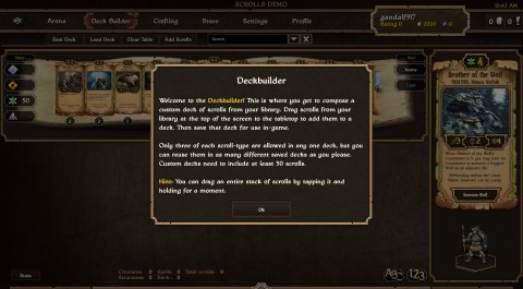 《我的世界》制作公司瑞典Mojang工作室开发的卡牌策略对战网游《卷轴》(Scrolls)日前正式发行,游戏登陆PC、Mac以及安卓系统的平板电脑,售价为5美元,并有一些游戏内购选项。根据官方发言人介绍:“玩家可以自由的收集卷轴来创建自己风格的牌组,在游戏对战中双方在六角方格组成的战场上召唤生物,并使用魔法辅助自己的生物或是打击对方,最终攻破地方阵地获得胜利。”
