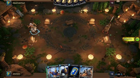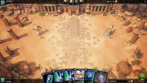 《神之浩劫:众神之手》是一款以第三人称MOBA游戏《神之浩劫》为背景创作的一款回合制卡牌战略游戏。在《神之浩劫:众神之手》中,玩家需要通过游戏中特别的卡牌收集系统来编制属于自己的队伍,并与其他的玩家进行1V1的对战。游戏基于虚幻4引擎开发,卡牌以3D风格来呈现,并具有多个离线模式。
