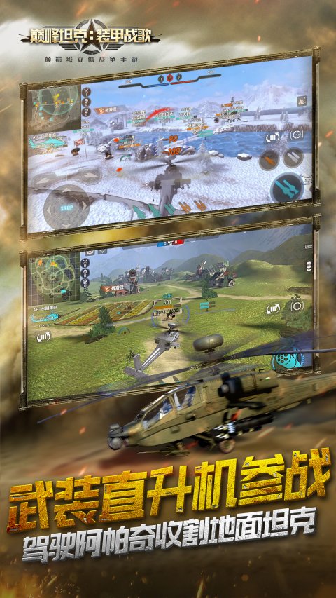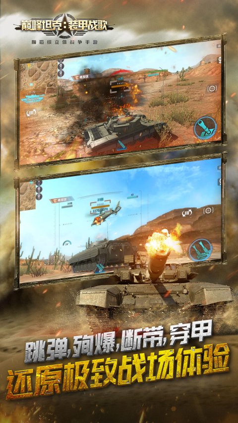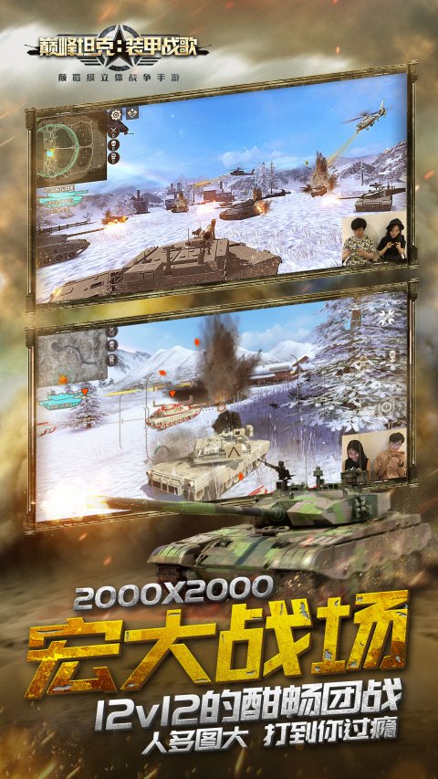 《巅峰坦克》是一款主打多维载具,陆空对战的竞技手游。全球资深战争题材研发团队倾力打造,致力于为您提供跨时代的多维现代战争竞技体验。您将在游戏中体验气势恢弘的庞大战争,2000x2000地图,12v12团战,高清画质,冰雪绝地,风车小镇,荒漠戈壁,为您展现多维现代战争的视觉盛宴。