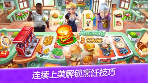 这是一个属于你的小镇,小镇上有蛋糕店、汉堡店、寿司店、海鲜店等多个主题餐厅,菜品丰富多样,不断解锁新餐厅提升你的烹饪技能;闯过不同目标的关卡获得奖励来翻新和建设你的餐厅,和镇长一起拓展小镇家园恢复往日光彩。