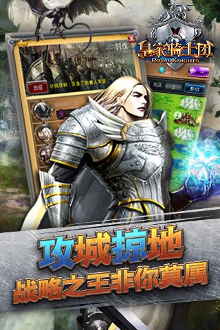 视频(0) 图集(1)游戏简介《皇家骑士团》突破传统手游单调枯燥模式,采取SLG+RPG双核玩法。在皇家骑士团游戏中,你可以携勇气前进,探索未知领域,也可以用策略为武器,开疆辟土,掠夺资源。此外,还可以缔结盟友,在抱团取暖的同时获取同盟buff,增强战力。同时,无VIP设计,让玩家可以公平竞争,凭实力说话,再也不用屈服于RMB玩家。《皇家骑士团》以魔幻中世纪风带你告别三国,西游等老套题材,体验暗黑美学带来的视觉盛宴,再掀乱世风云!